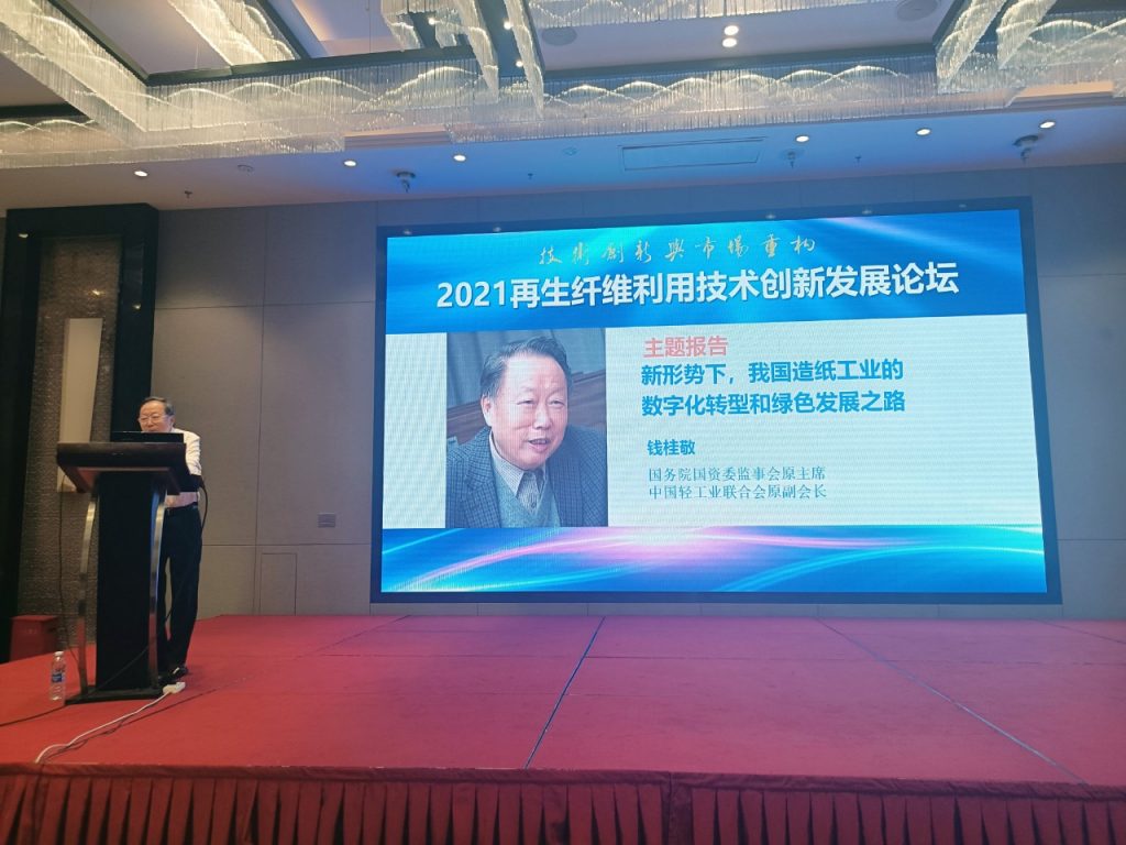 再生纖維利用技術(shù)專業(yè)委員會(簡稱:再生纖維專委會)秘書長梁川主持創(chuàng)新發(fā)展論壇開幕式,中國造紙學會副理事長兼秘書長曹春昱和鄭州運達造紙設備有限公司董事長兼總經(jīng)理、再生纖維專委會主任委員許超峰分別為開幕式致辭;國務院國資委監(jiān)事會原主席、中國輕工業(yè)聯(lián)合會原副會長錢桂敬做了“新形勢下,我國造紙工業(yè)的數(shù)字化轉(zhuǎn)型和綠色發(fā)展之路”的主題報告;中國制漿造紙研究院有限公司中國造紙雜志社產(chǎn)業(yè)研究中心主任周在峰代表再生纖維專委會秘書處,介紹分享了《2020-2021年度我國再生纖維利用及裝備發(fā)展報告》。