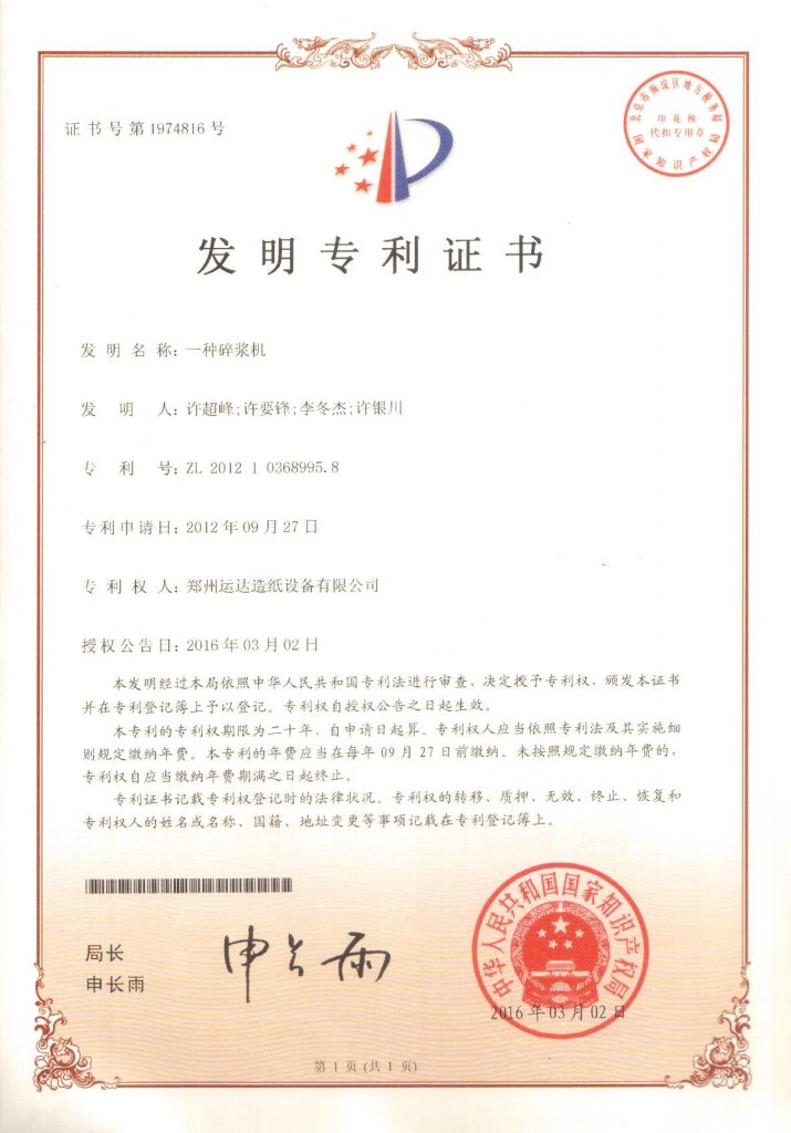 一種碎漿機(jī),專利號(hào):ZL201210368995.8