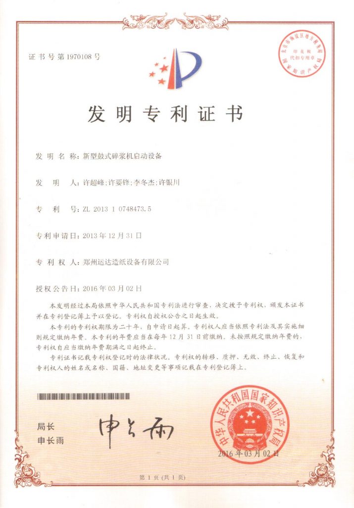 新型鼓式碎漿機(jī)啟動(dòng)設(shè)備,專利號(hào):ZL201310748473.5