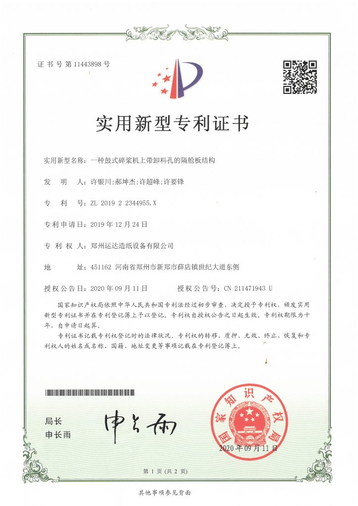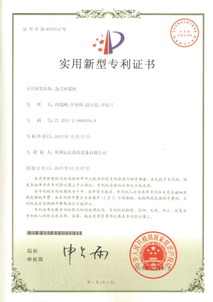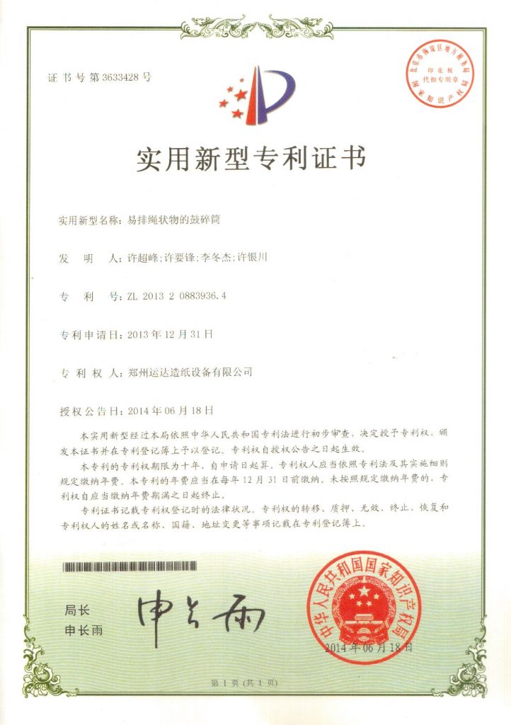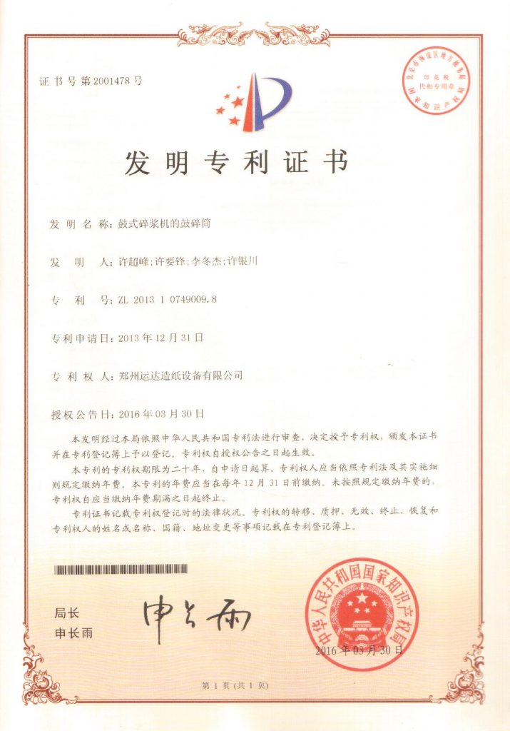 鼓式碎漿機(jī)的鼓碎筒,專利號(hào):ZL201310749009.8