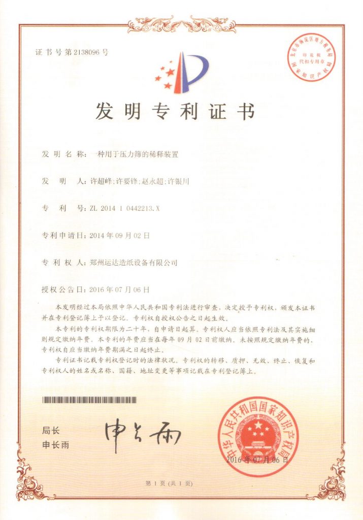 一種用于壓力篩的稀釋裝置,專利號(hào):ZL201410442213.X