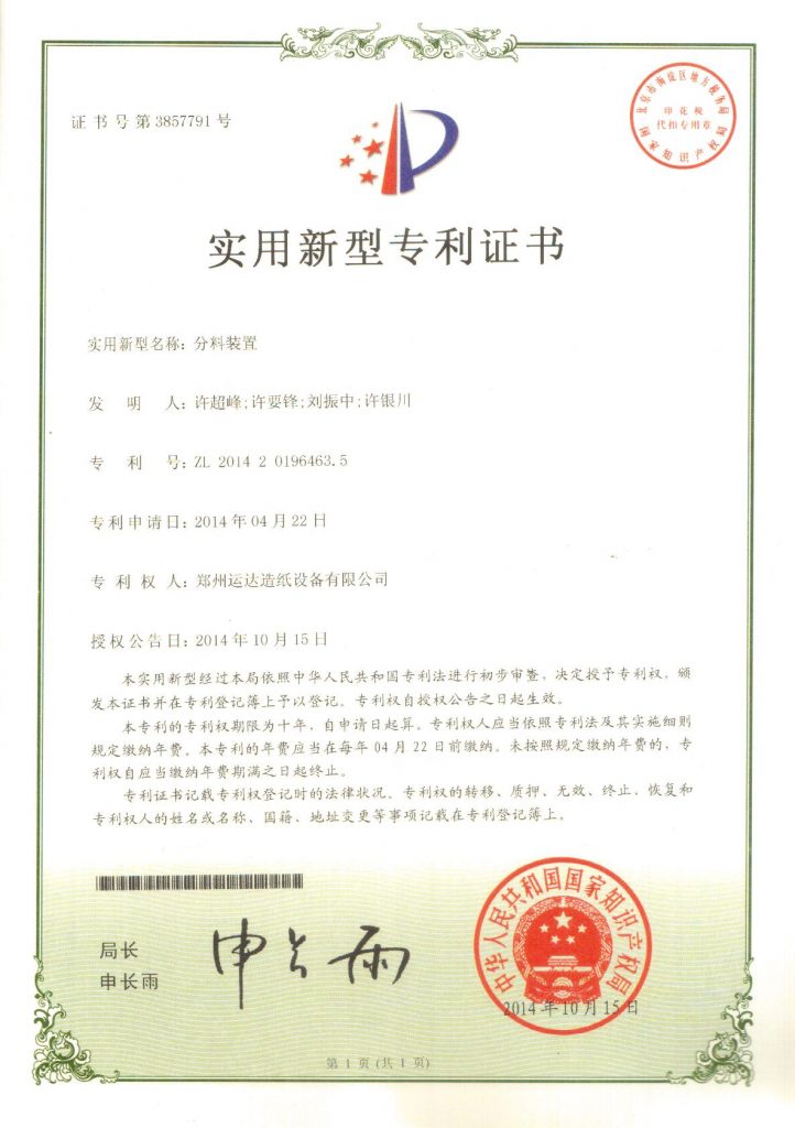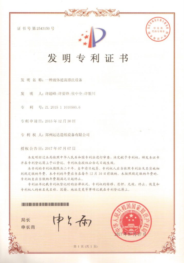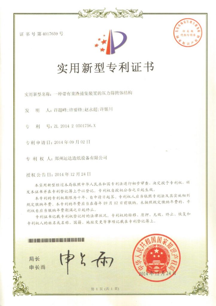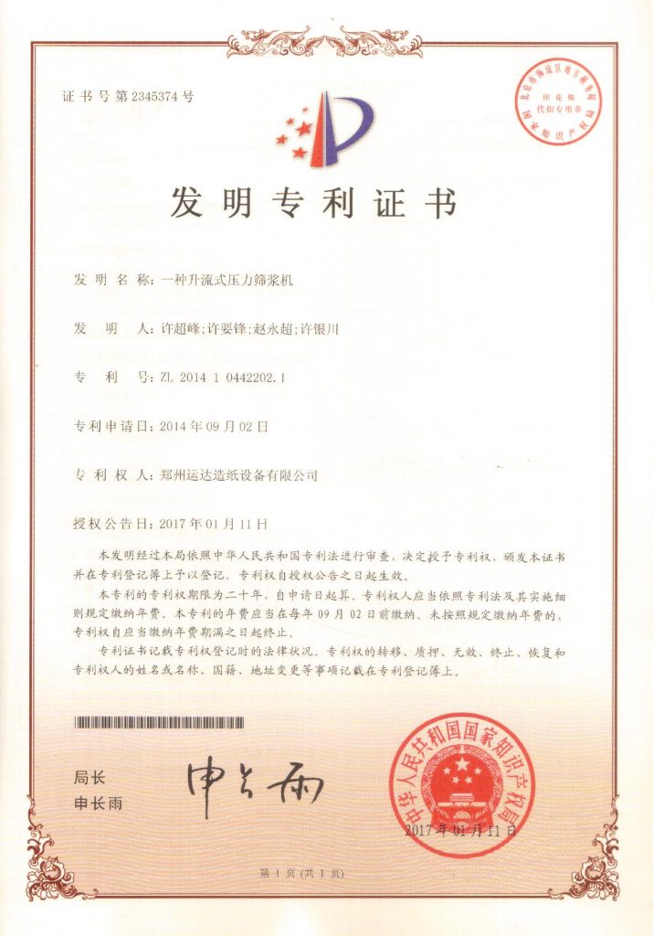 一種升流式壓力篩漿機(jī),專利號(hào):ZL201410442202.1