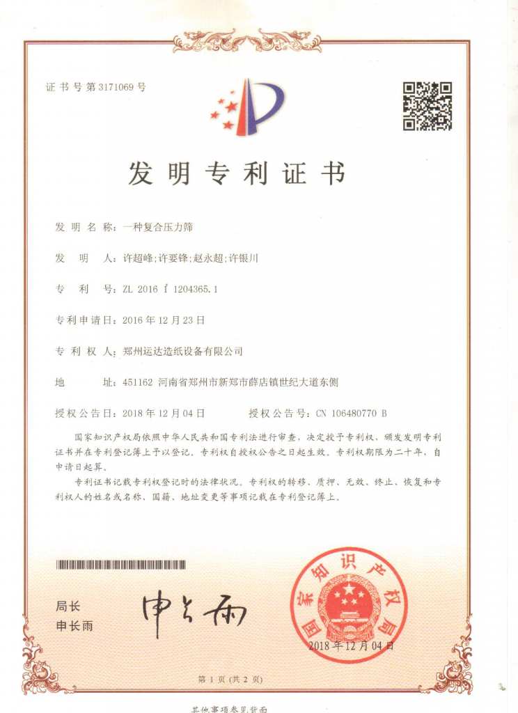 一種復(fù)合壓力篩,專利號(hào):ZL201611204365.1