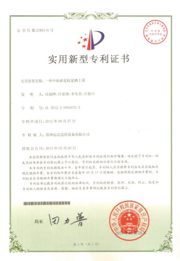 一種中濃碎漿機(jī)漿槽上罩 ZL201220502670.X