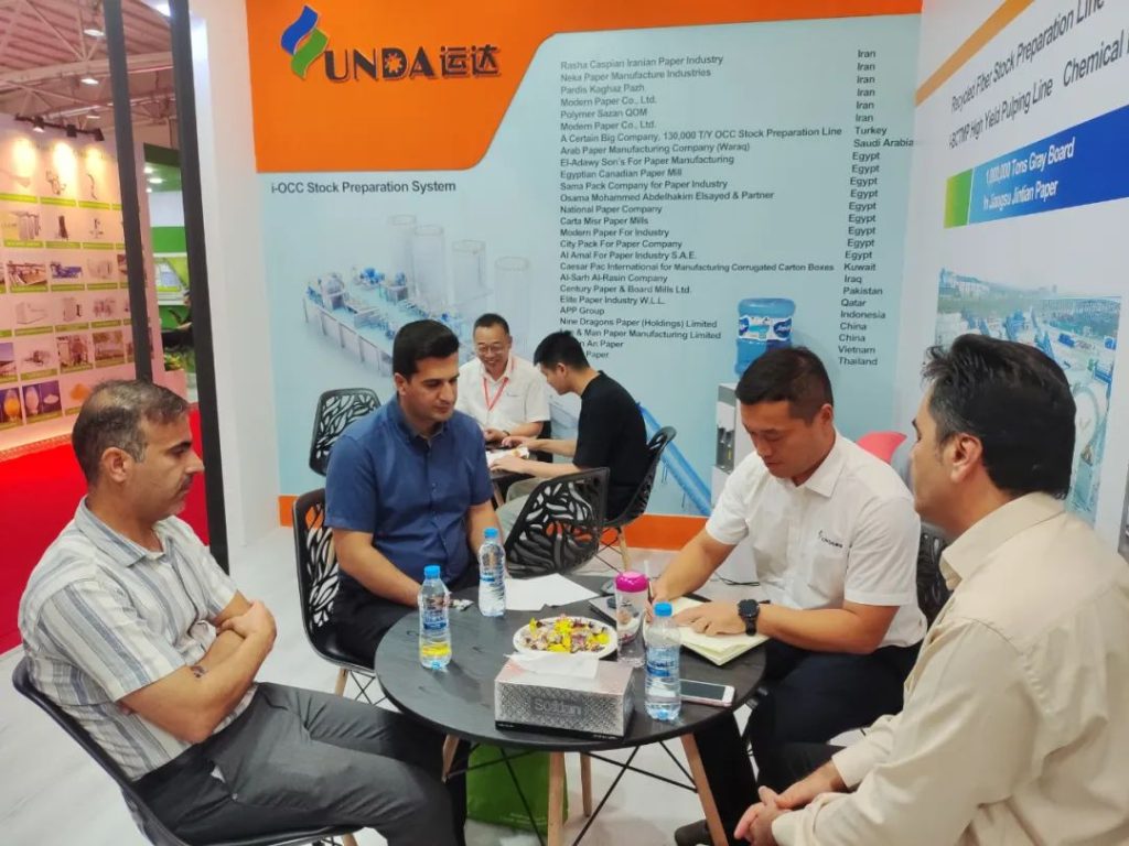 展會期間,運達展位吸引了伊朗及其周邊中東國家市場的新老客戶,Modern Paper、Neka Paper、Latif Paper、Rasha Caspian、Taw Paper、Meisam Paper、Kavir Moghava等諸多客戶齊聚運達展位參觀洽談。客戶在了解到運達的i-OCC處理系統(tǒng)、i-VSP原生木漿備漿系統(tǒng)、i-CTMP和i-BCTMP高得率制漿系統(tǒng)的先進制造工藝后,和運達國際業(yè)務(wù)團隊進行了深度探討和交流,并對運達可靠、高效、節(jié)能的制漿系統(tǒng)設(shè)備表示了認可。