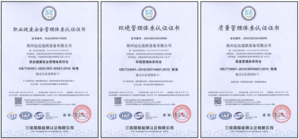 2023年7月12日,“造紙?jiān)O(shè)備 (制漿篩選設(shè)備) 的制造和服務(wù)”通過質(zhì)量管理體系認(rèn)證;